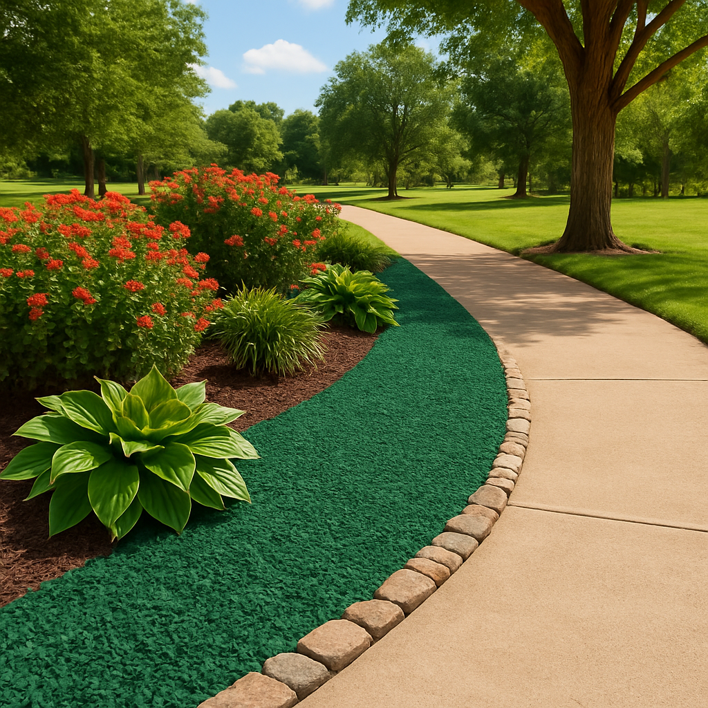 Create a refreshing, natural look in your landscape projects with our Green Mulch. Its rich, earthy tone blends seamlessly with plants, making it ideal for garden paths, schoolyards, pet zones, and backyard designs.