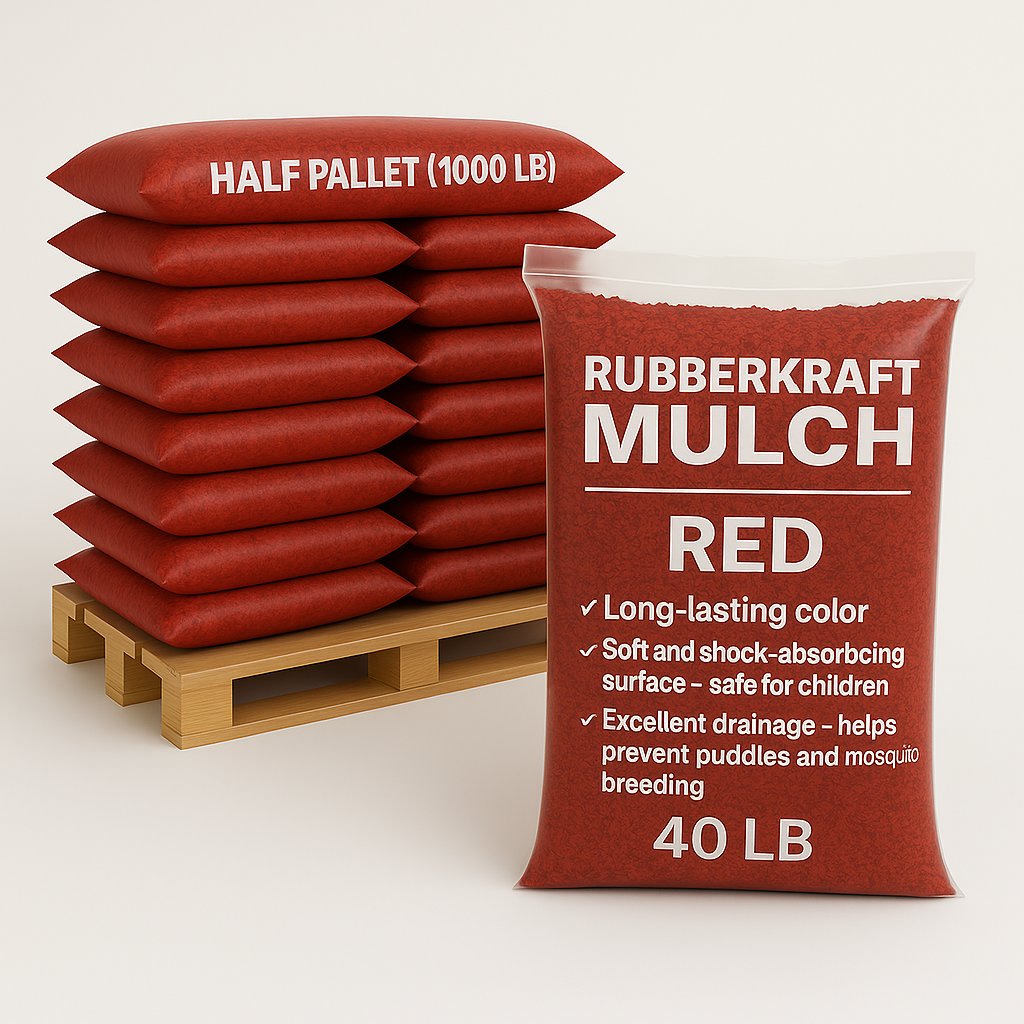 Each half pallet contains 25 bags of 40 lbs each — a practical solution for medium to large landscaping or recreational projects.