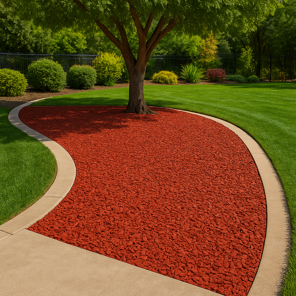 Bring vibrant energy to your landscapes with our Red Mulch. Its bold, rich color is perfect for creating visual contrast and warmth in play areas, garden paths, or poolside zones. Designed for safety and visual appeal, this mulch is soft underfoot and helps reduce impact on falls, making it ideal for areas where families and children gather.